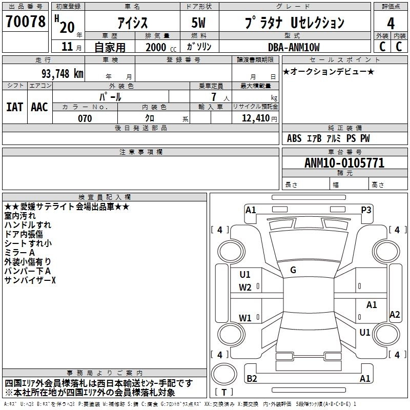 Год выпуска2008 Пробег 94 000 км КузовANM10W Комплектация PLATANA U SELECTION
