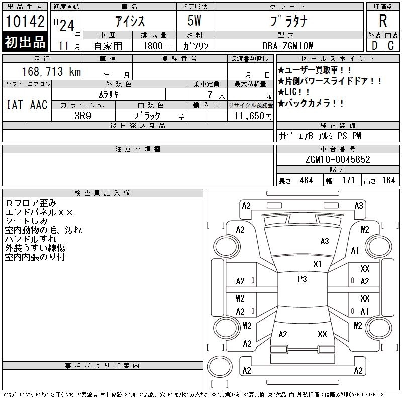 Год выпуска2012 Пробег 169 000 км КузовZGM10W Комплектация PLATANA