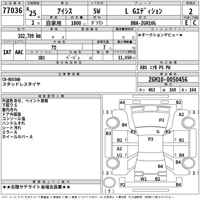 Статус выставлен на аукцион Лот 77036 Аукцион TAA Chubu Дата аукциона 12.03.2026