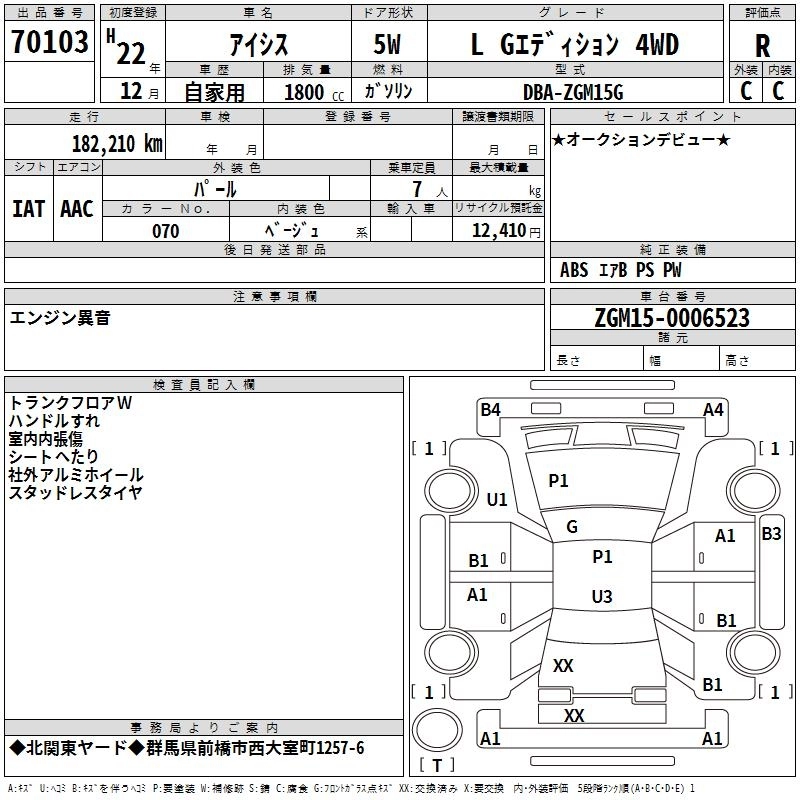 Статус выставлен на аукцион Лот 70103 Аукцион TAA Kantou Дата аукциона 12.03.2026