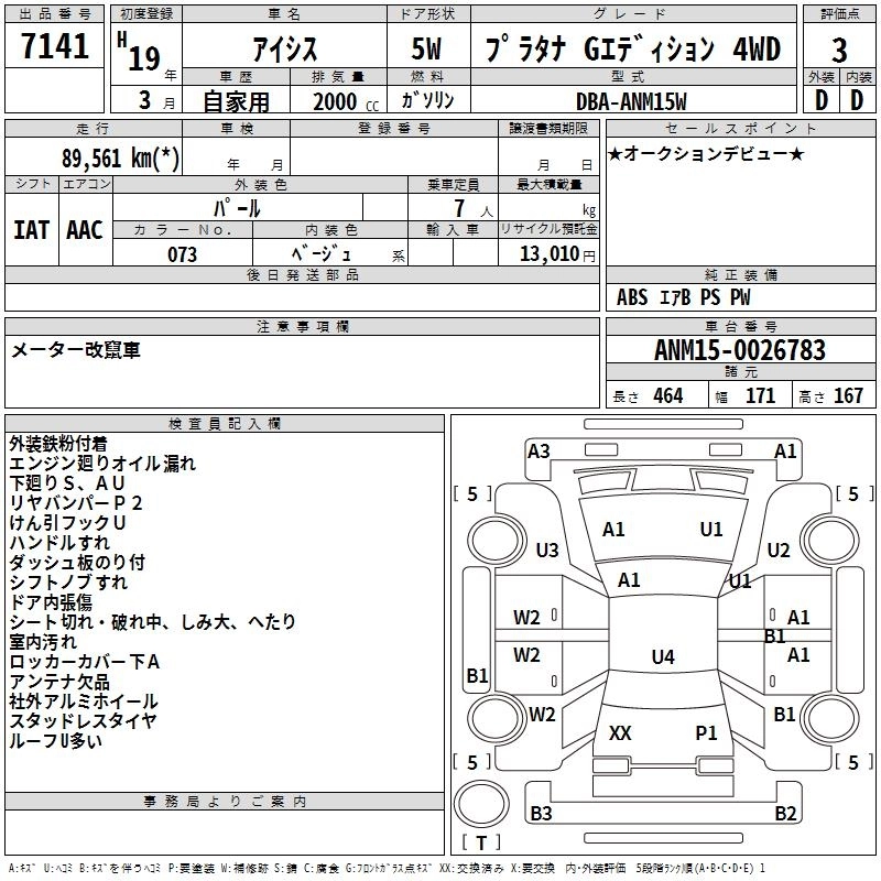 Статус выставлен на аукцион Лот 7141 Аукцион TAA Hokkaido Дата аукциона 12.03.2026