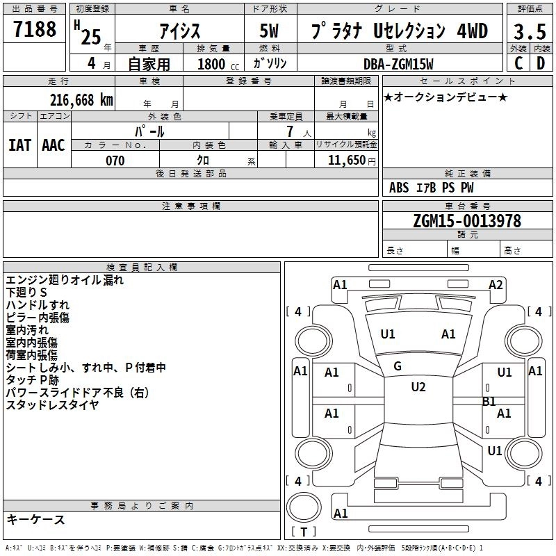 Год выпуска2013 Пробег 217 000 км КузовZGM15W Комплектация PLATANA U SELECTION 4WD