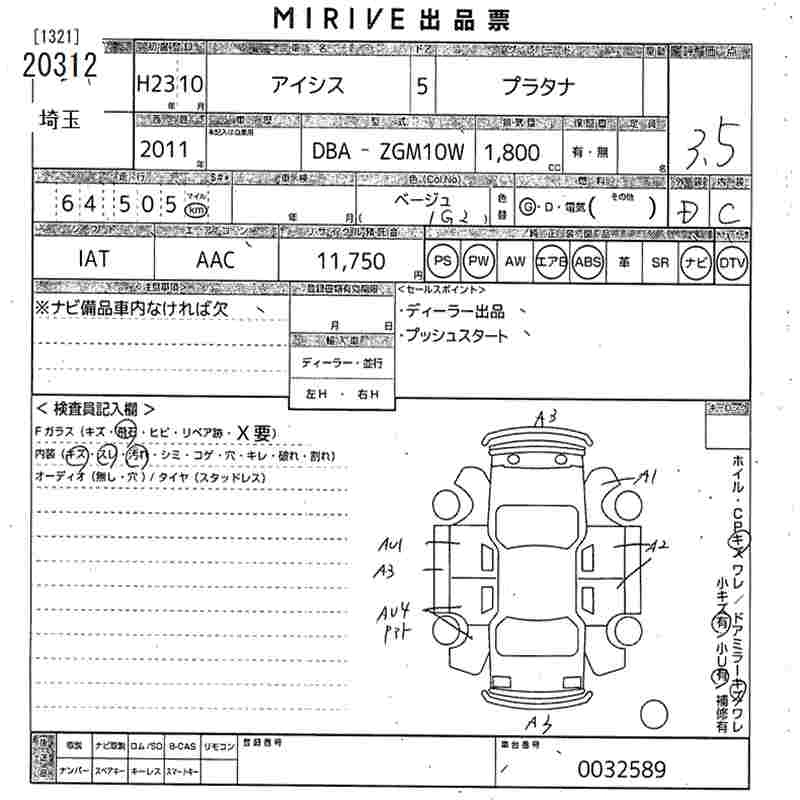 Год выпуска2011 Пробег 65 000 км КузовZGM10W Комплектация PLATANA