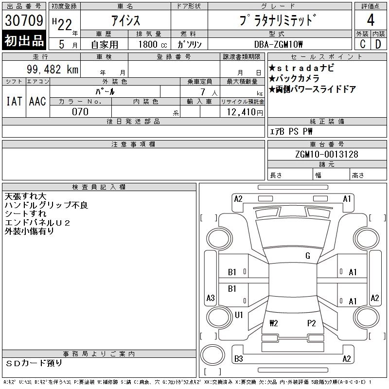 TOYOTA ISIS 2010 г., лот № 30709