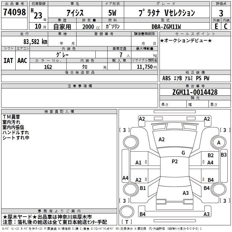 TOYOTA ISIS 2011 г., лот № 74098