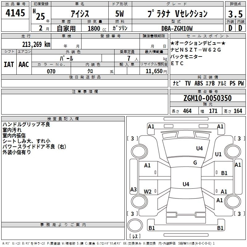Год выпуска2013 Пробег 213 000 км КузовZGM10W Комплектация PLATANA V SELECTION