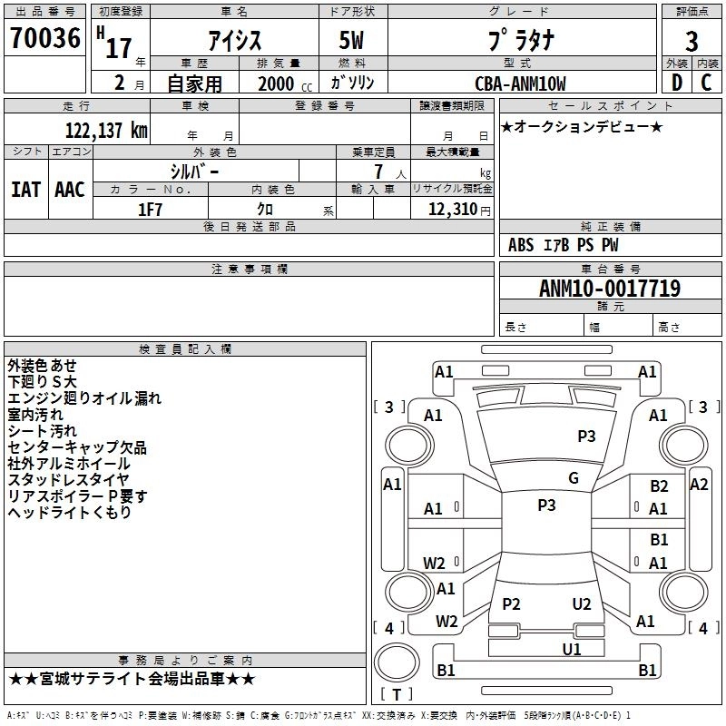 Год выпуска2005 Пробег 122 000 км КузовANM10W Комплектация PLATANA