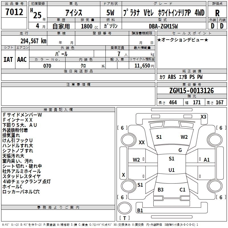 Год выпуска2013 Пробег 295 000 км КузовZGM15W Комплектация PLATANA V SELECTION WHITE IN 4WD