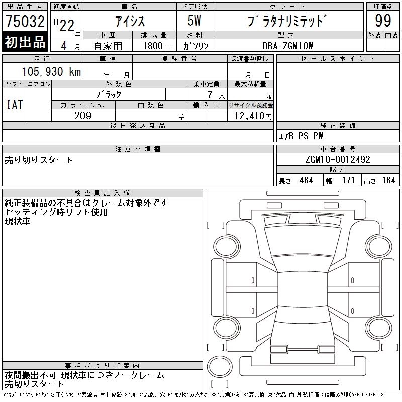 Год выпуска2010 Пробег 106 000 км КузовZGM10W Комплектация PLATANA LIMITED
