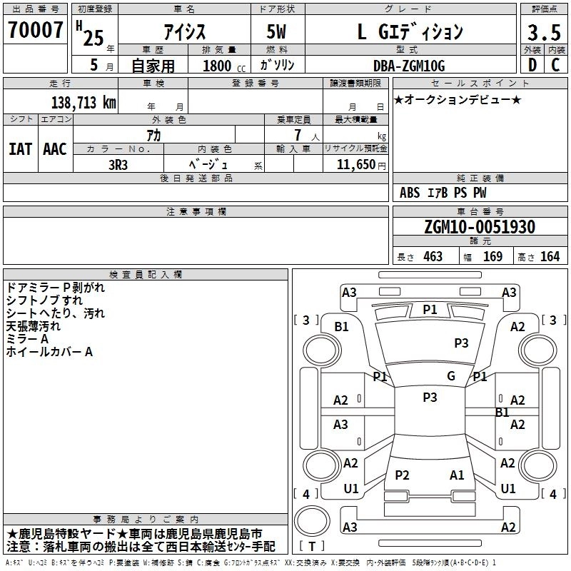 TOYOTA ISIS 2013 г., лот № 70007