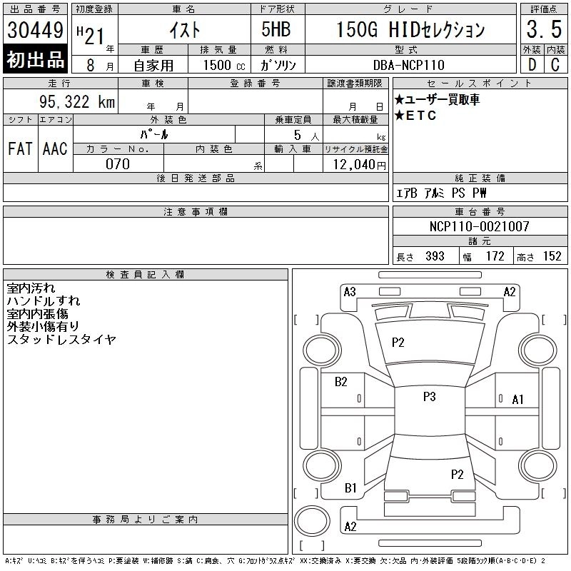 Стартовая цена авто на аукционе 0 ¥