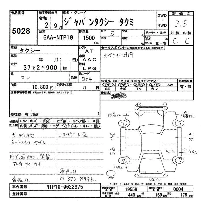 TOYOTA JPN TAXI 2020 г., лот № 5028