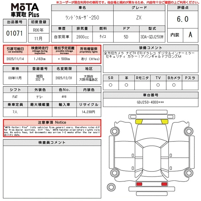 TOYOTA LAND CRUISER 250 2024 г., лот № 1071