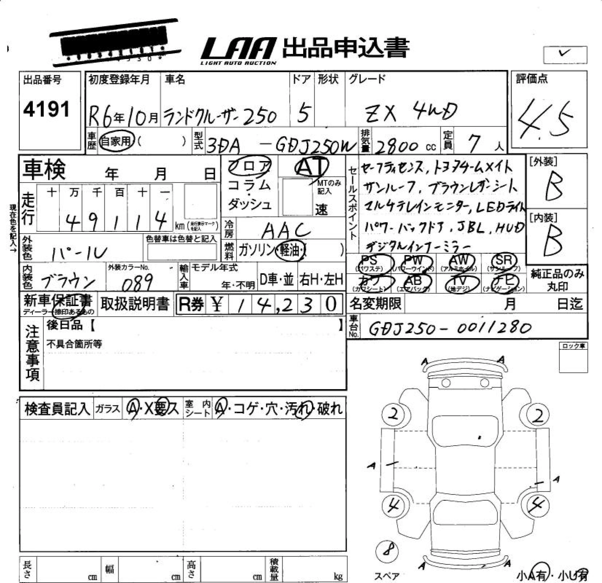 Статус не продан Лот 4191 Аукцион LAA Okayama Дата аукциона 23.01.2026