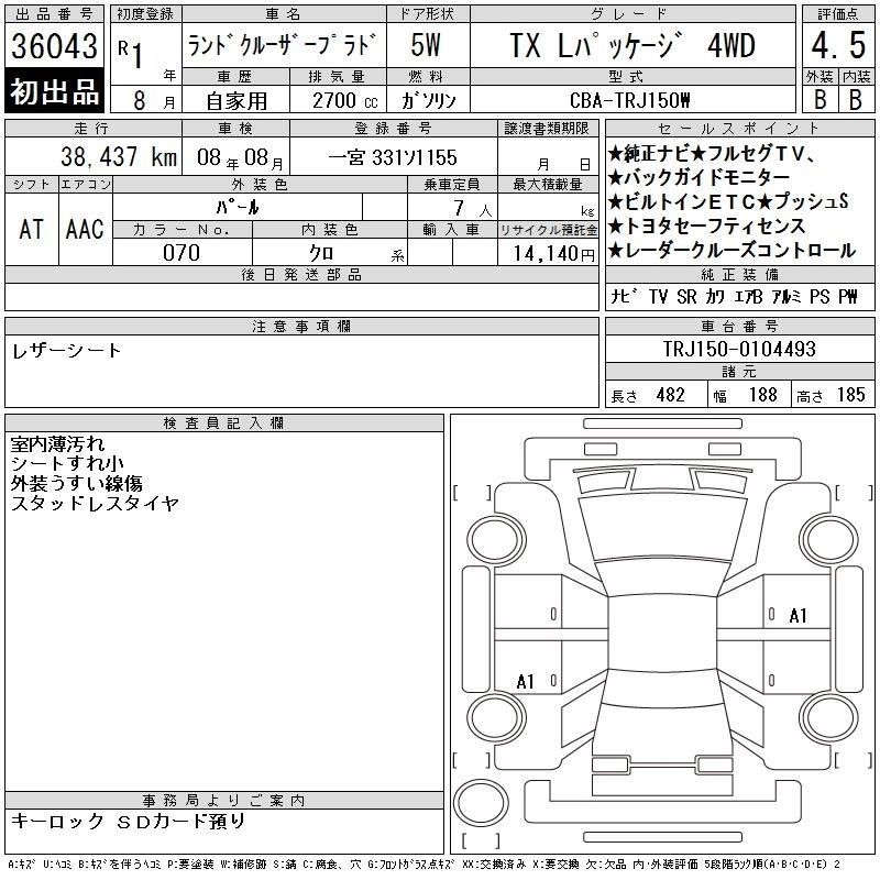 38 000 км КузовTRJ150W КомплектацияTX L PACKAGE 4WD