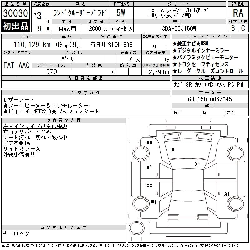 110 000 км КузовGDJ150W КомплектацияTX L PACK 70TH ANNIVER 4WD