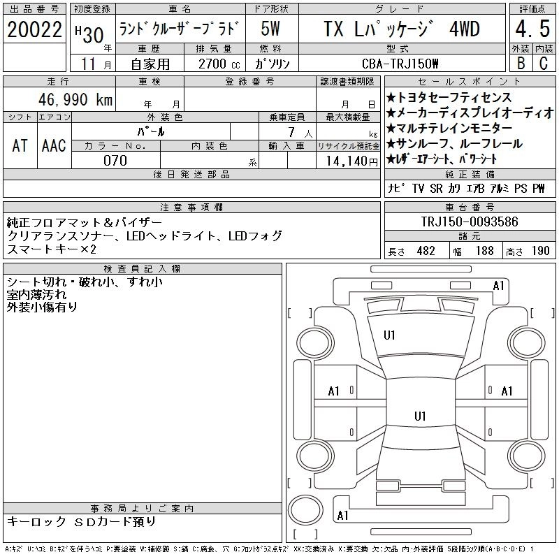 47 000 км КузовTRJ150W КомплектацияTX L PACKAGE 4WD