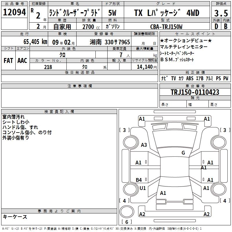65 000 км КузовTRJ150W КомплектацияTX L PACKAGE 4WD