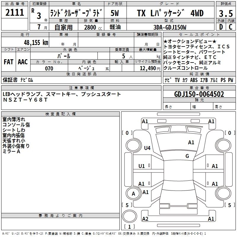 Год выпуска2021 Пробег 48 000 км КузовGDJ150W КомплектацияTX L PACKAGE 4WD