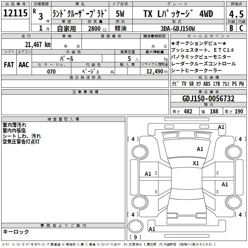 21 000 км КузовGDJ150W КомплектацияTX L PACKAGE 4WD