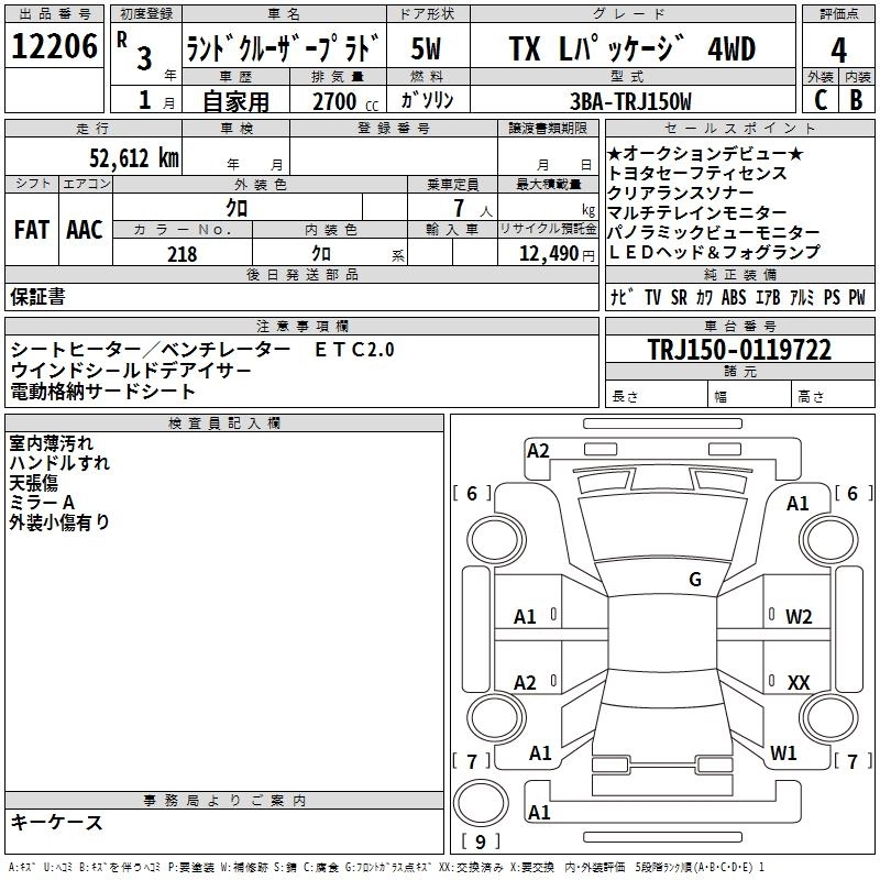 53 000 км КузовTRJ150W КомплектацияTX L PACKAGE 4WD
