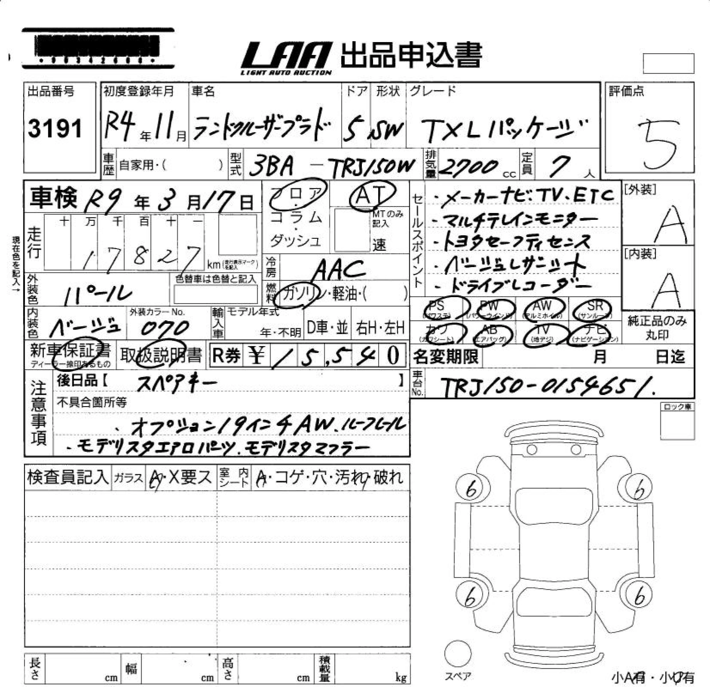 Статус продан Лот 3191 Аукцион LAA Okayama Дата аукциона 23.01.2026