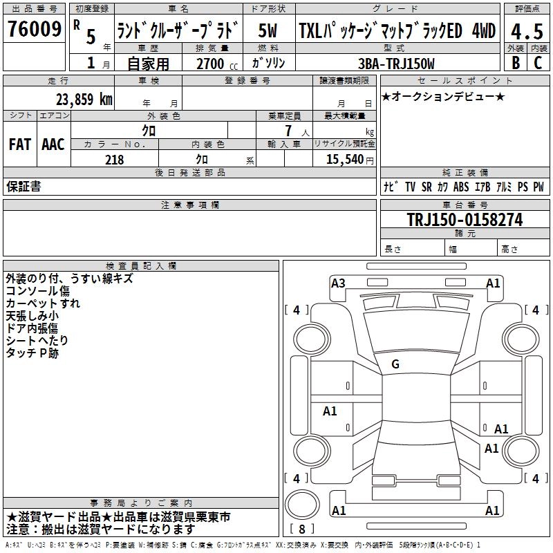 24 000 км КузовTRJ150W КомплектацияTXL PACKAGE MAT BLA4WD