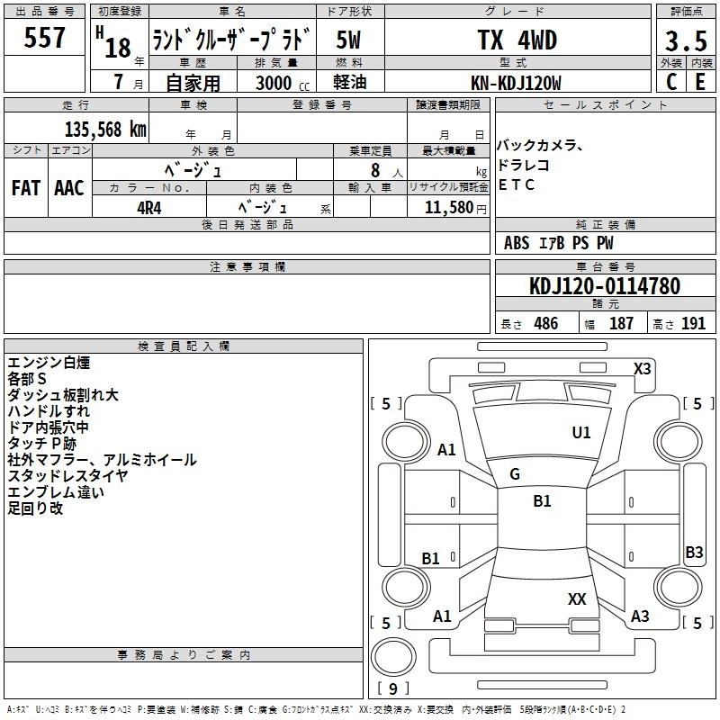 Год выпуска2006 Пробег 136 000 км КузовKDJ120W КомплектацияTX 4WD