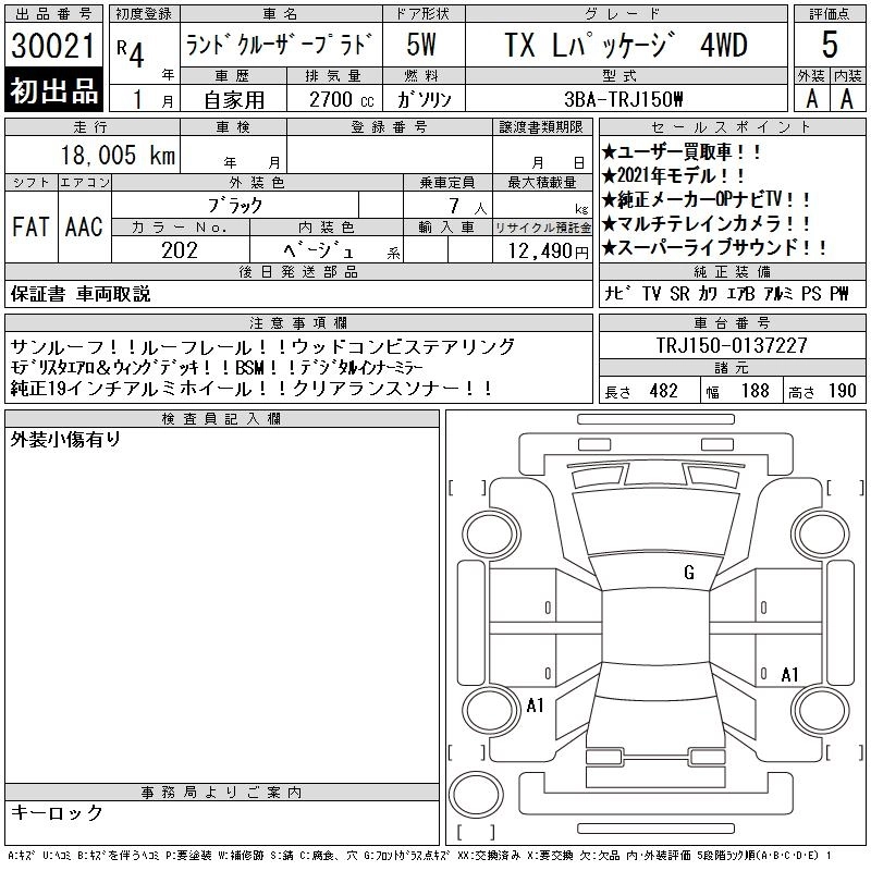 Год выпуска2022 Пробег 18 000 км КузовTRJ150W КомплектацияTX L PACKAGE 4WD