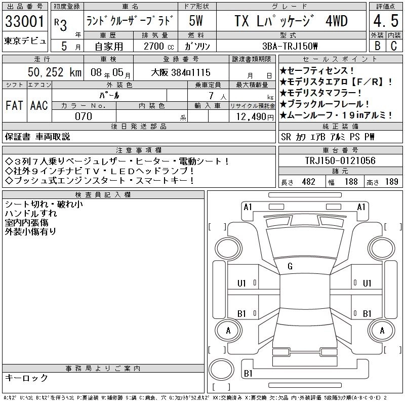 50 000 км КузовTRJ150W КомплектацияTX L PACKAGE 4WD
