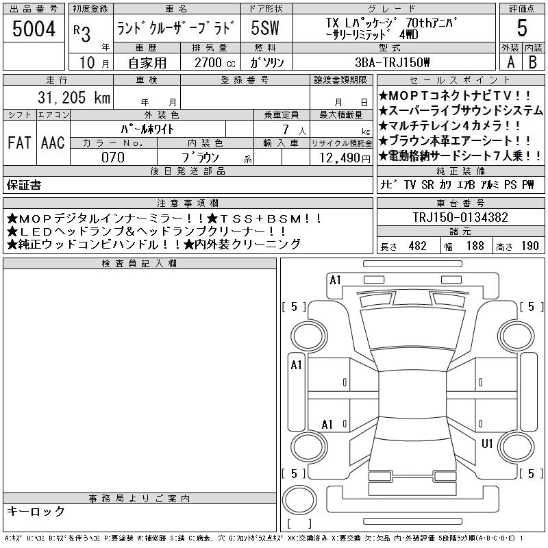 Статус не продан Лот 5004 Аукцион CAA Gifu Дата аукциона 10.03.2026