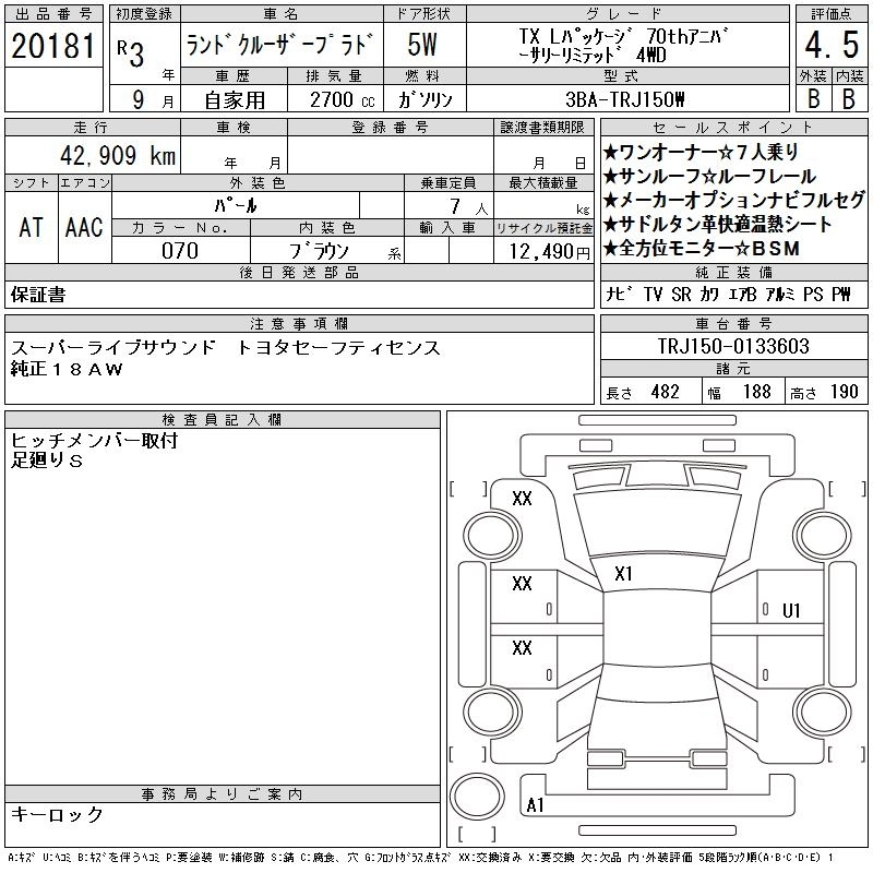 43 000 км КузовTRJ150W КомплектацияTX L PACK 70TH ANNIVER 4WD