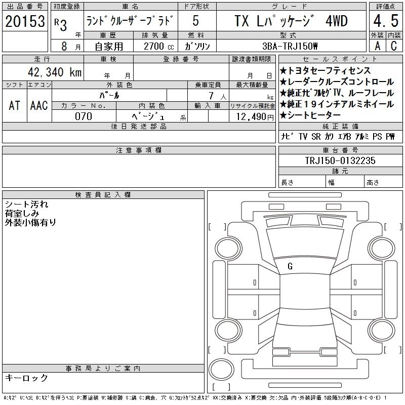 42 000 км КузовTRJ150W КомплектацияTX L PACKAGE 4WD