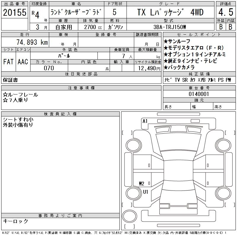 75 000 км КузовTRJ150W КомплектацияTX L PACKAGE 4WD