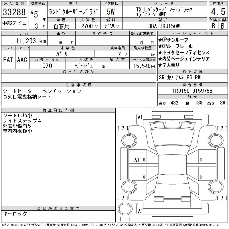 11 000 км КузовTRJ150W КомплектацияTXL PACKAGE MAT BLA4WD