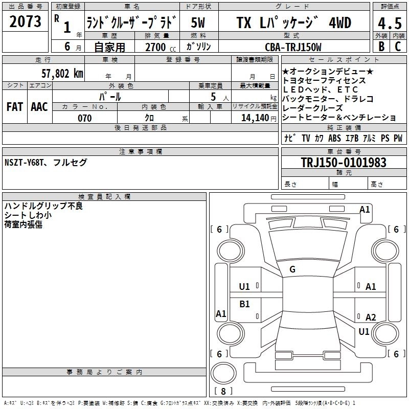 Год выпуска2019 Пробег 58 000 км КузовTRJ150W КомплектацияTX L PACKAGE 4WD