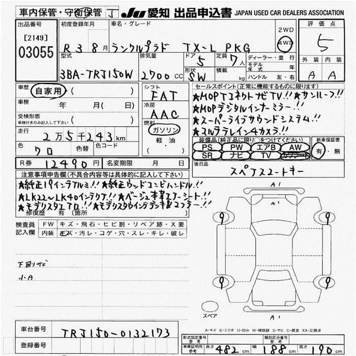 Год выпуска2021 Пробег 25 000 км КузовTRJ150W КомплектацияTX L PACKAGE 4WD