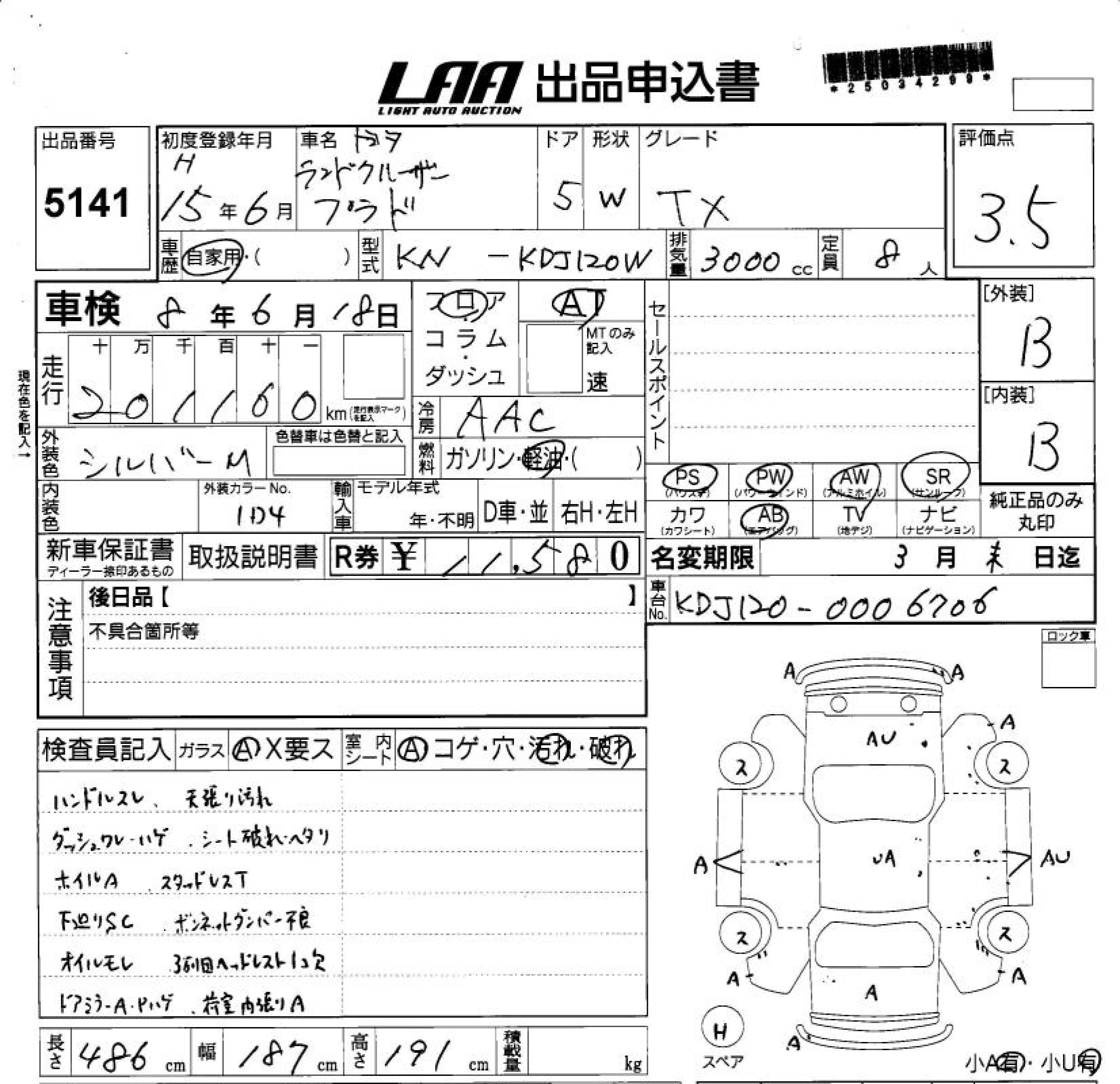 Статус выставлен на аукцион Лот 5141 Аукцион LAA Shikoku Дата аукциона 11.03.2026