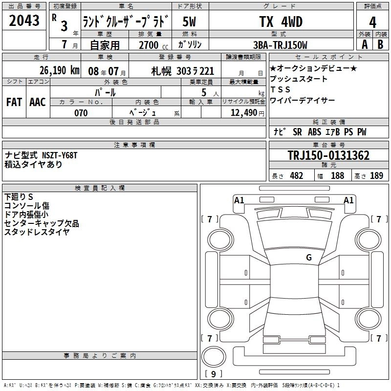Статус выставлен на аукцион Лот 2043 Аукцион TAA Hokkaido Дата аукциона 12.03.2026