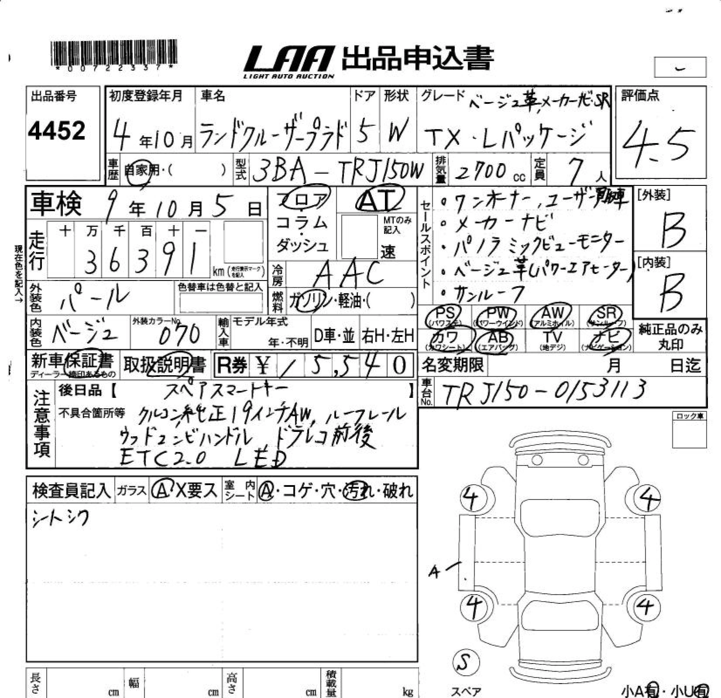 Год выпуска2022 Пробег 36 000 км КузовTRJ150W КомплектацияTX L PACKAGE BEIGE LEATHER