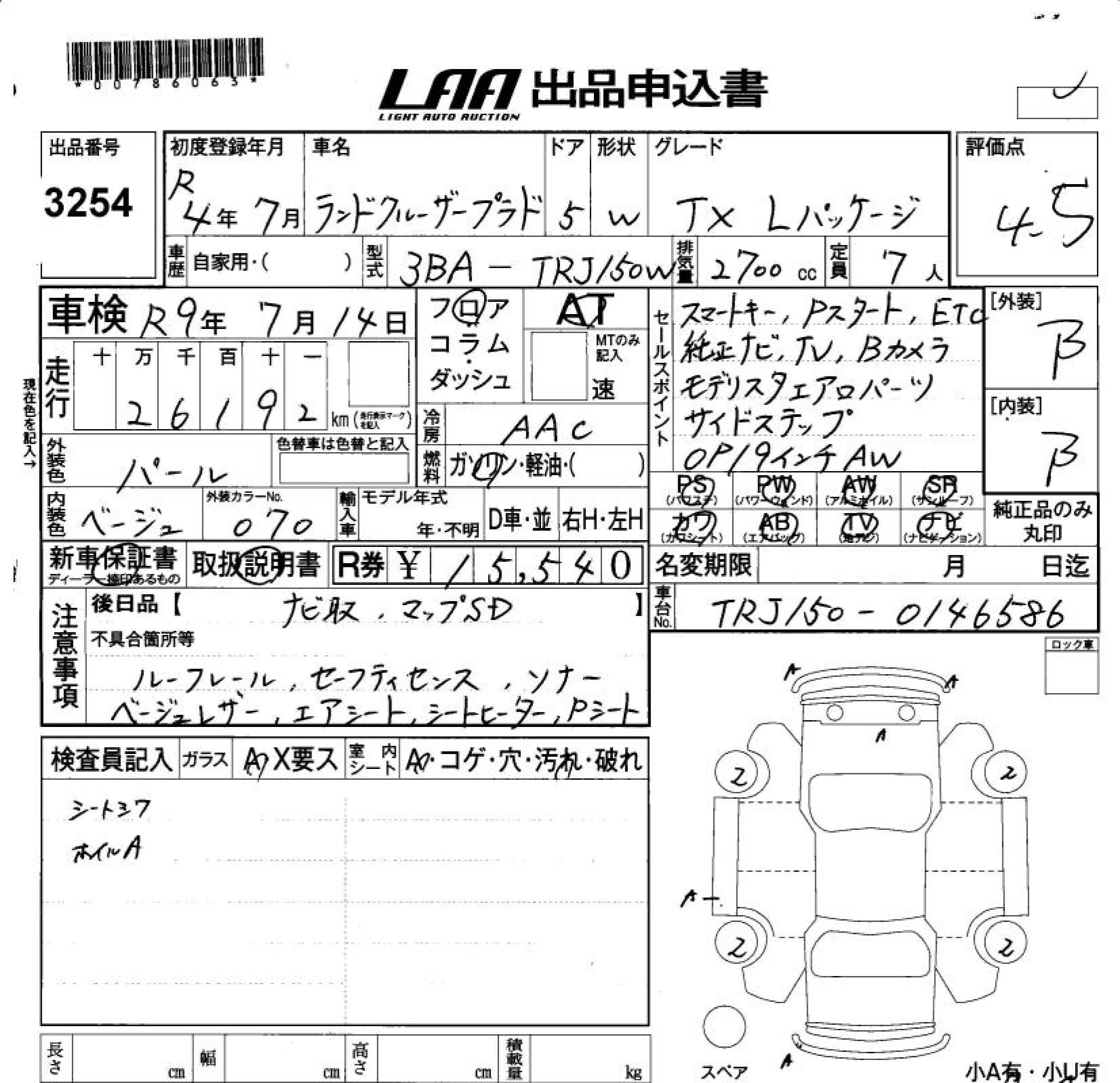 Статус не продан Лот 3254 Аукцион LAA Okayama Дата аукциона 13.03.2026