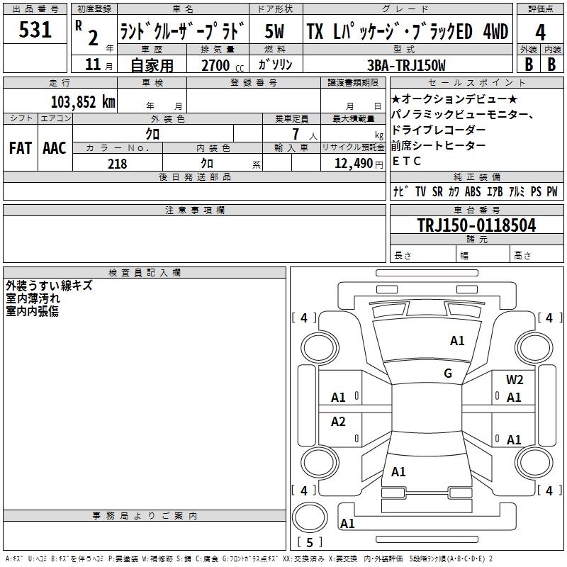 Год выпуска2020 Пробег 104 000 км КузовTRJ150W КомплектацияTX L PACKAGE *BLA4WD