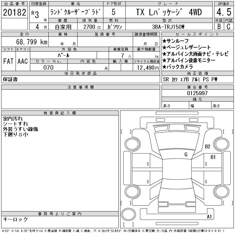 69 000 км КузовTRJ150W КомплектацияTX L PACKAGE 4WD