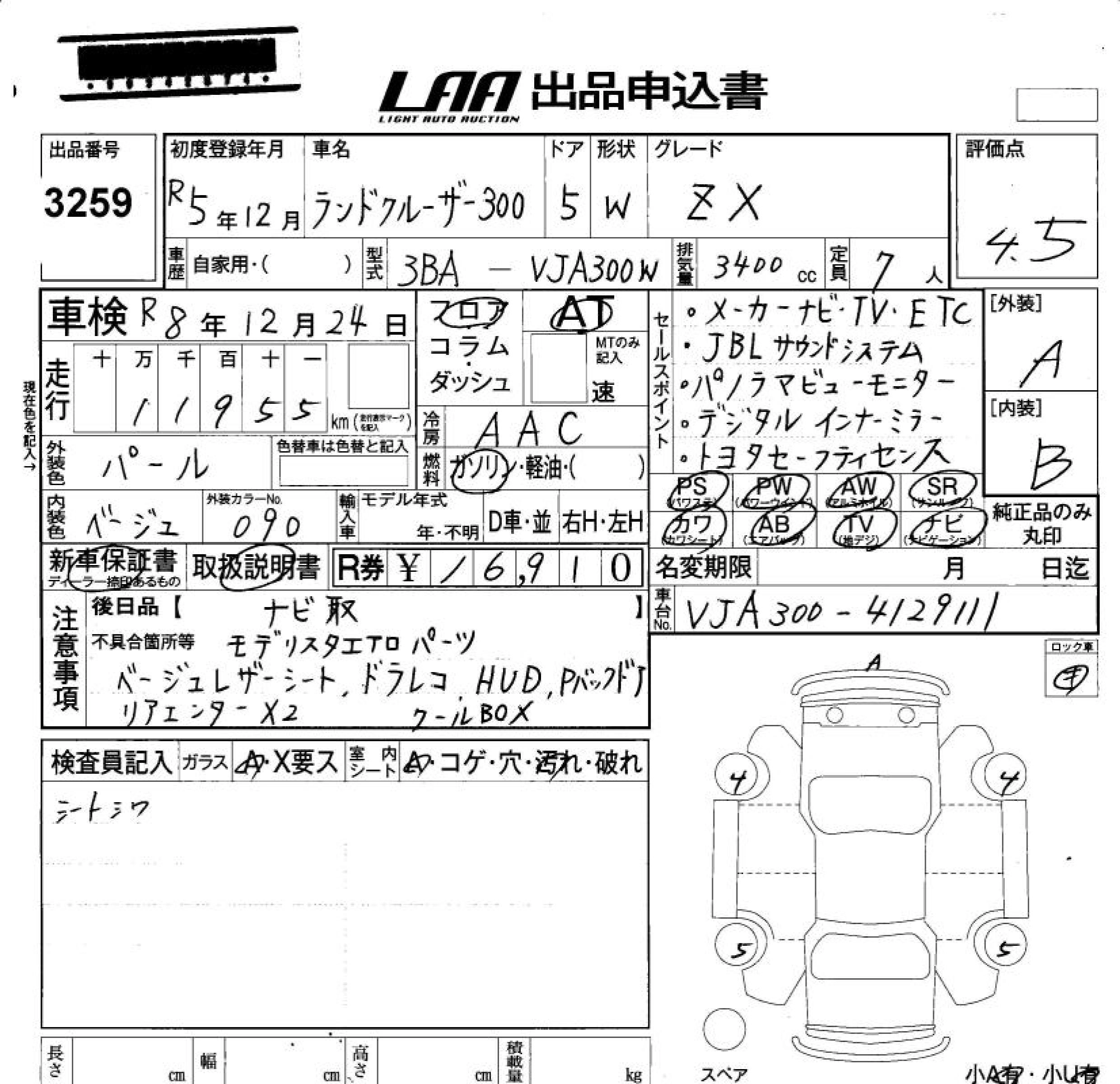 Статус не продан Лот 3259 Аукцион LAA Okayama Дата аукциона 23.01.2026
