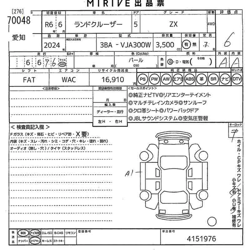 Статус не продан Лот 70048 Аукцион MIRIVE Aichi Дата аукциона 30.01.2026