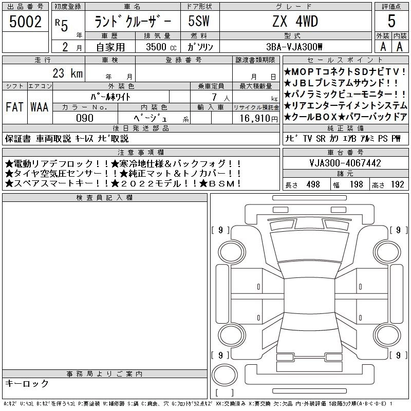 Год выпуска2023 КузовVJA300W КомплектацияZX 4WD