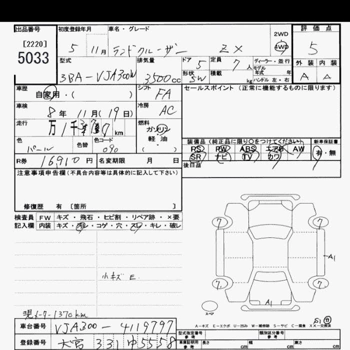 Статус выставлен на аукцион Лот 5033 Аукцион JU Saitama Дата аукциона 10.03.2026
