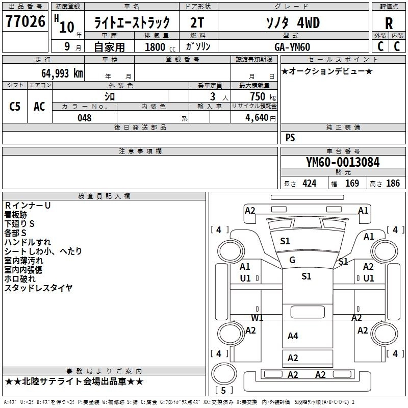 TOYOTA LITE ACE TRUCK 1998 г., лот № 77026