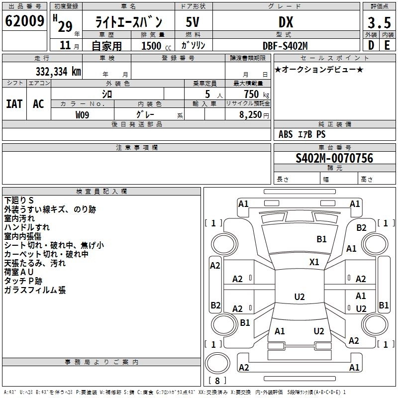 TOYOTA LITE ACE VAN 2017 г., лот № 62009