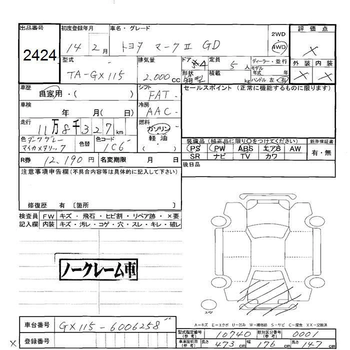 TOYOTA MARK II 2002 г., лот № 2424